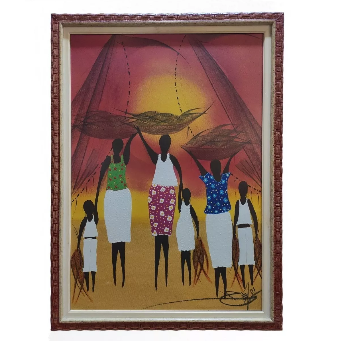 Quadro De Parede Mulheres Pescadoras Moldura De Palha