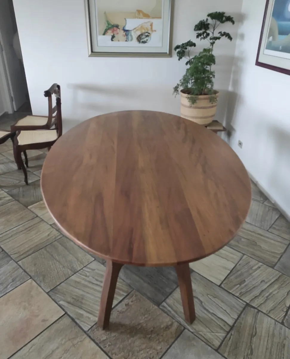 Mesa Oval Com Base Central X, Madeira Maciça