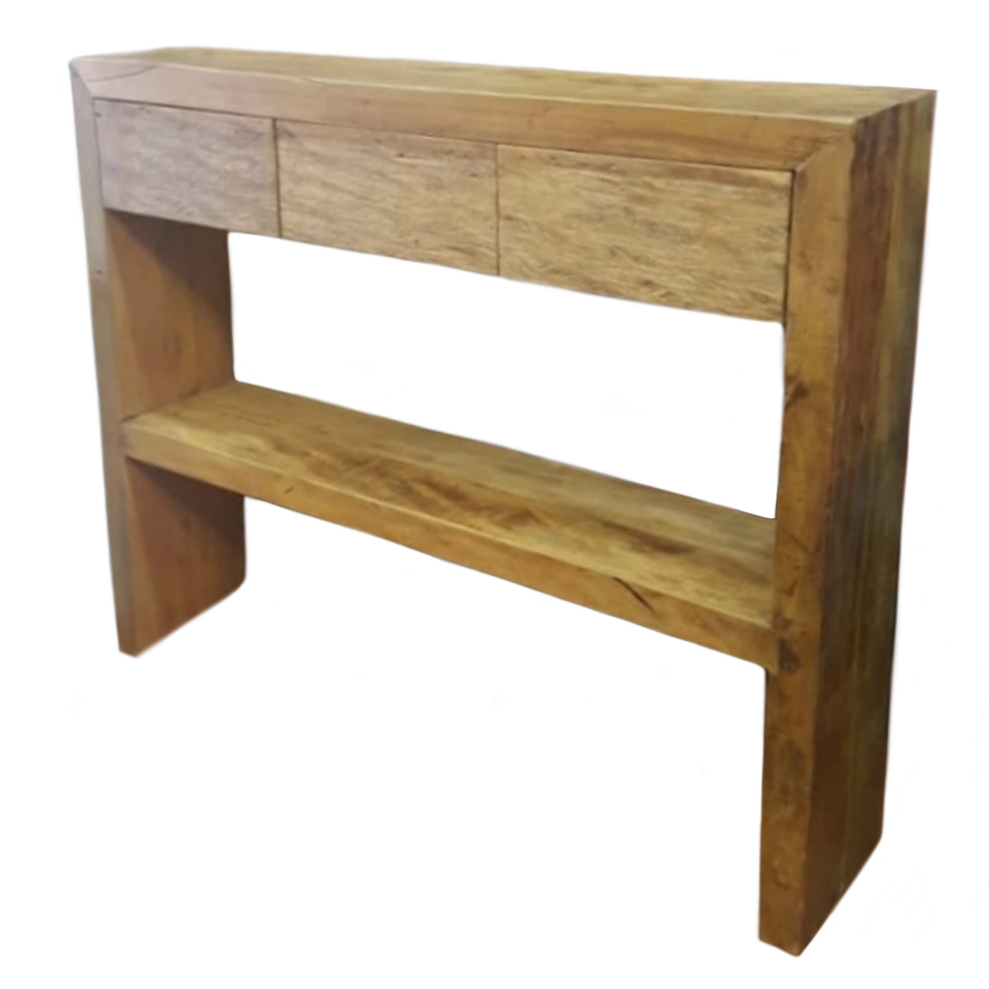 Aparador de peroba rosa, madeira maciça de demolição, estilo rústico natural com 3 gavetas e 1 prateleira.