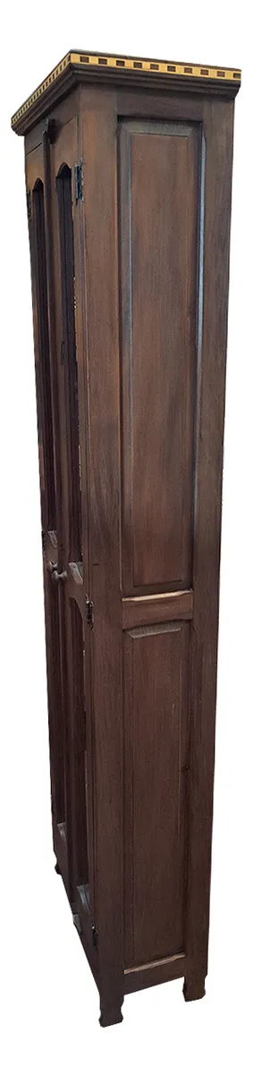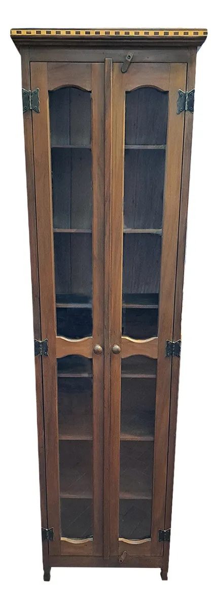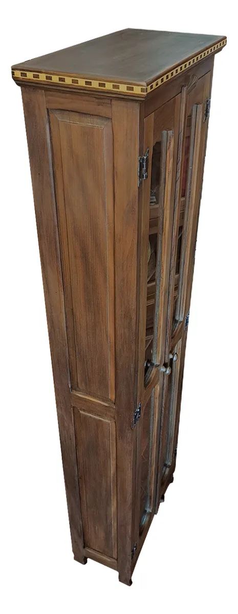 Armario cristaleira com vidros nas portas, detalhes em marchetaria, ideal para guardar DVDs, CDs, livros pequenos, coleções.