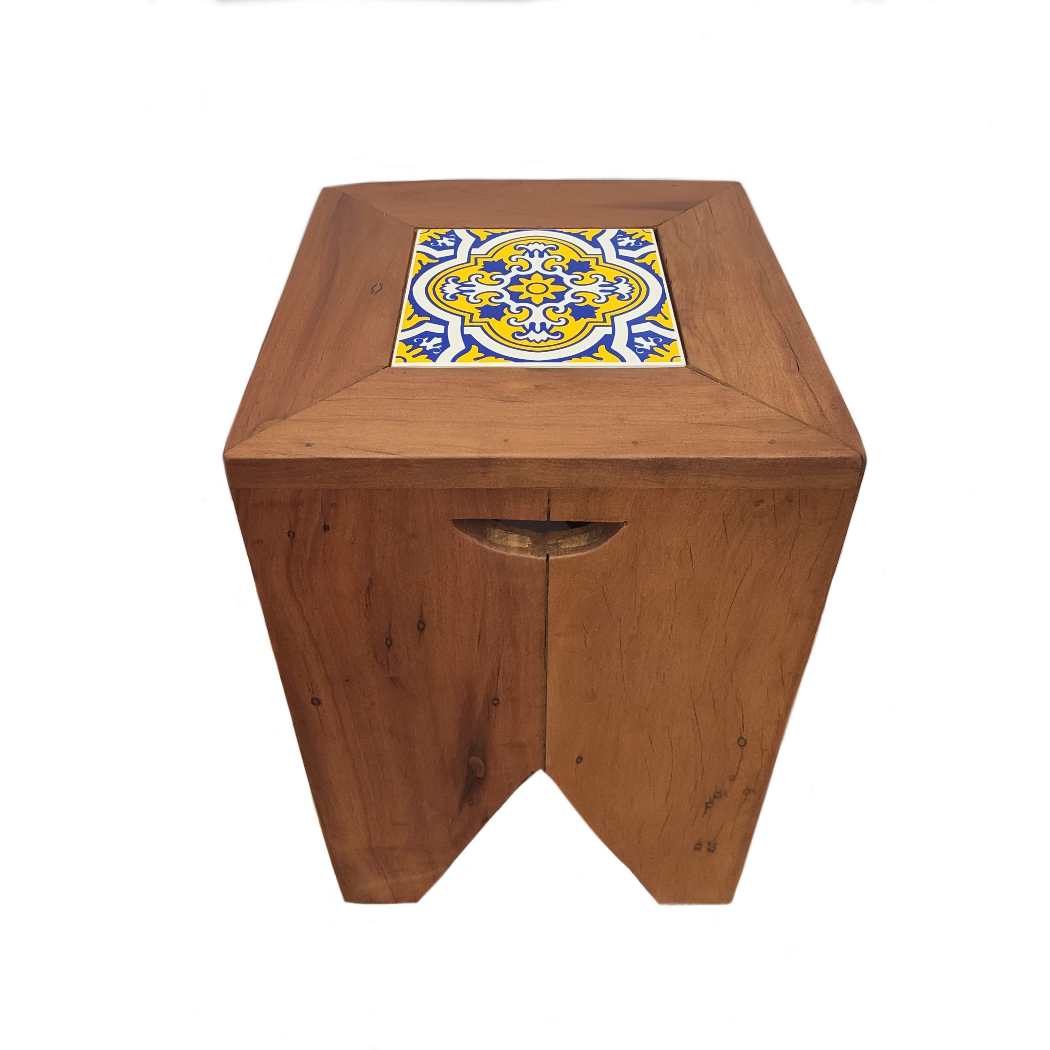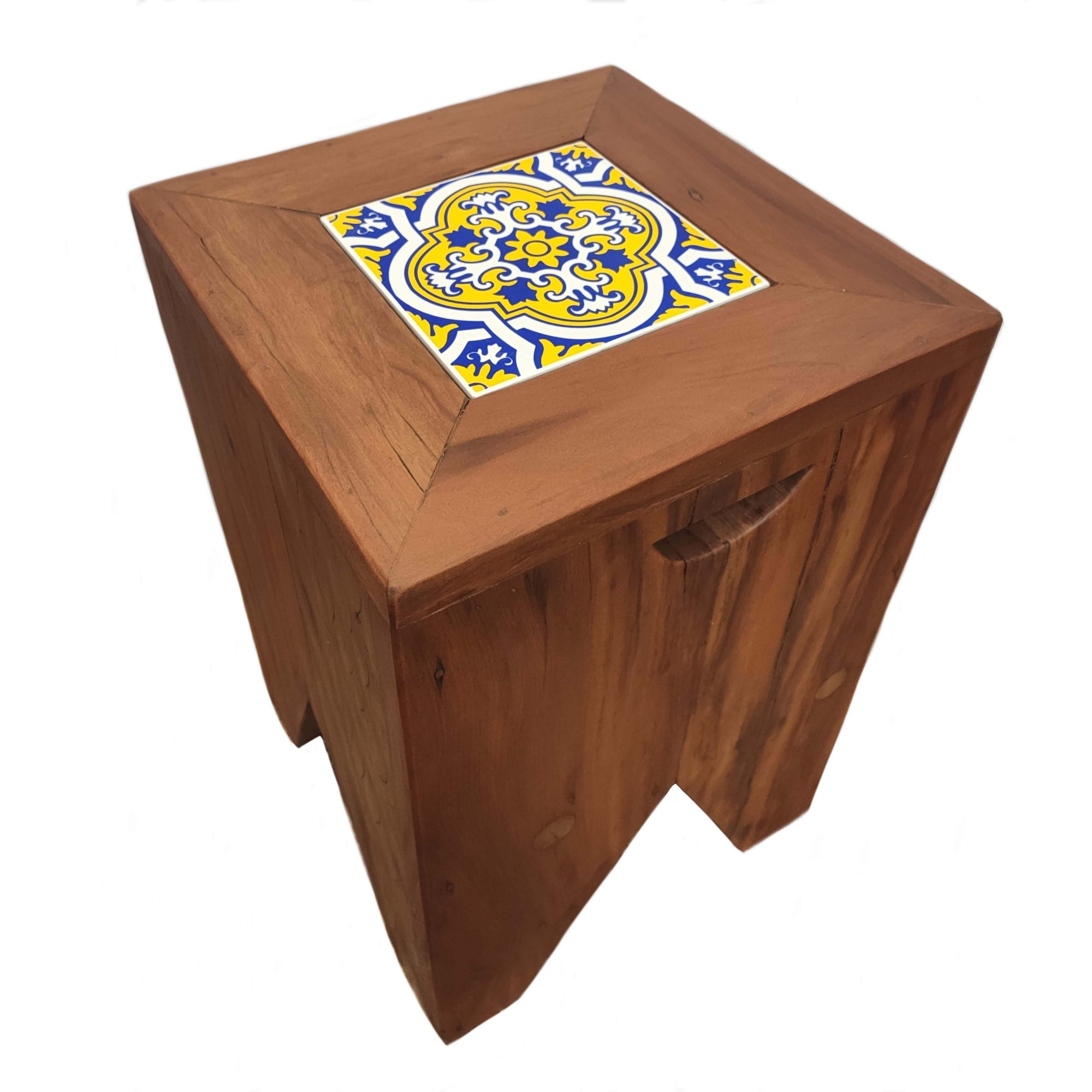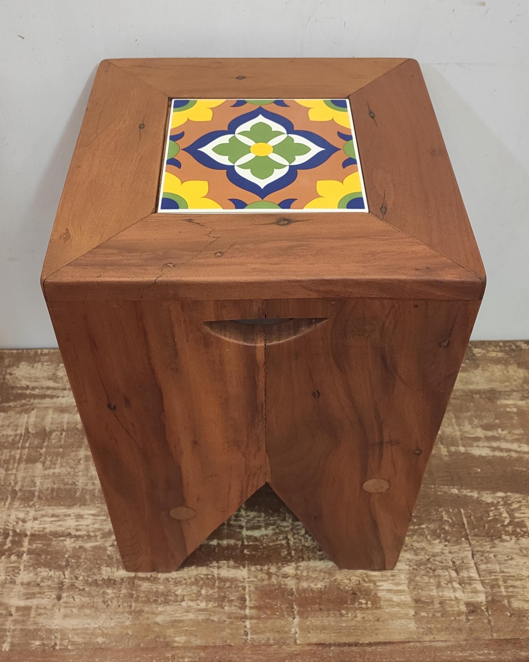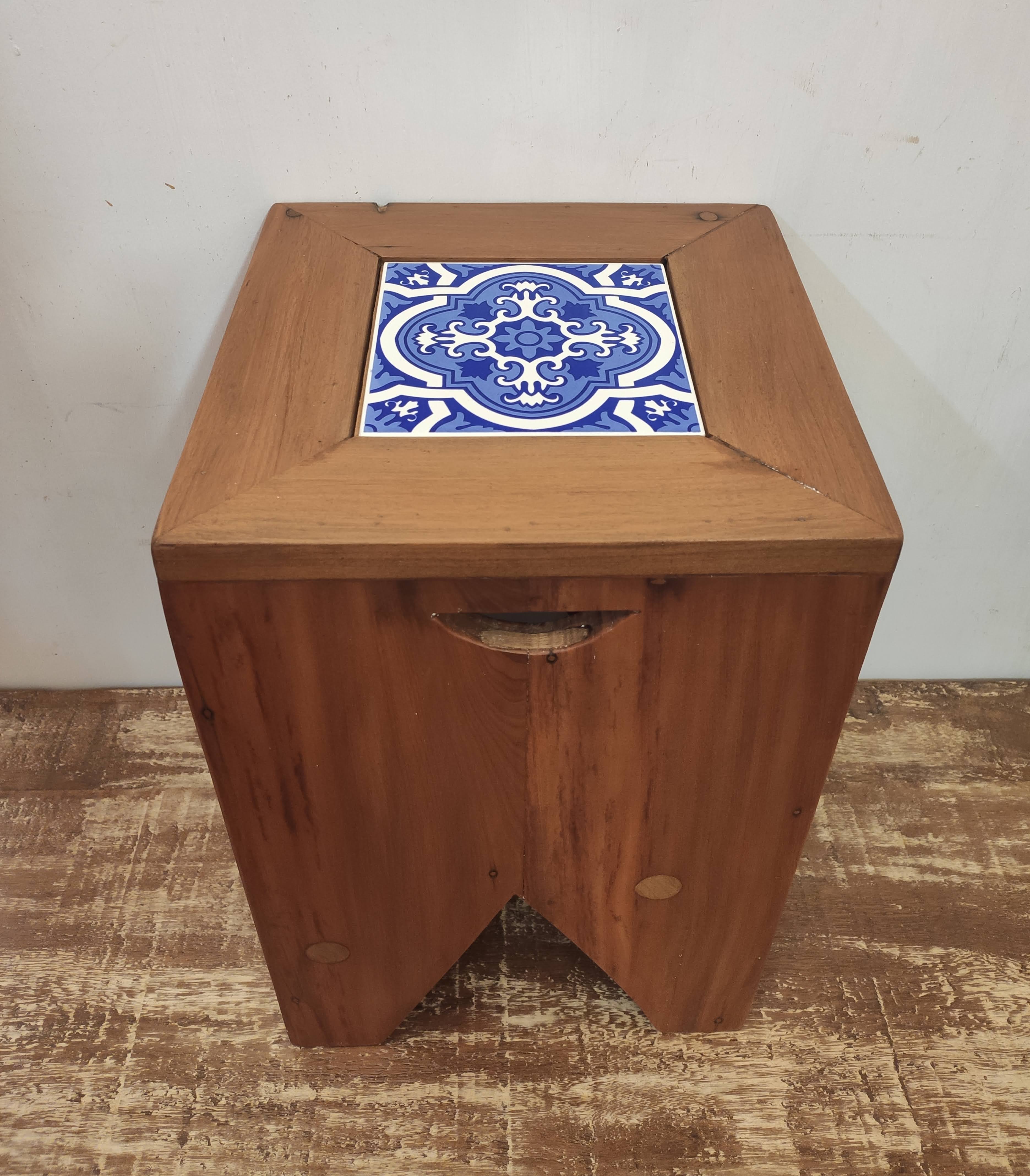 Banco em madeira maciça com 1 azulejo *SOLICITE ORÇAMENTO VIA WHATSAPP*