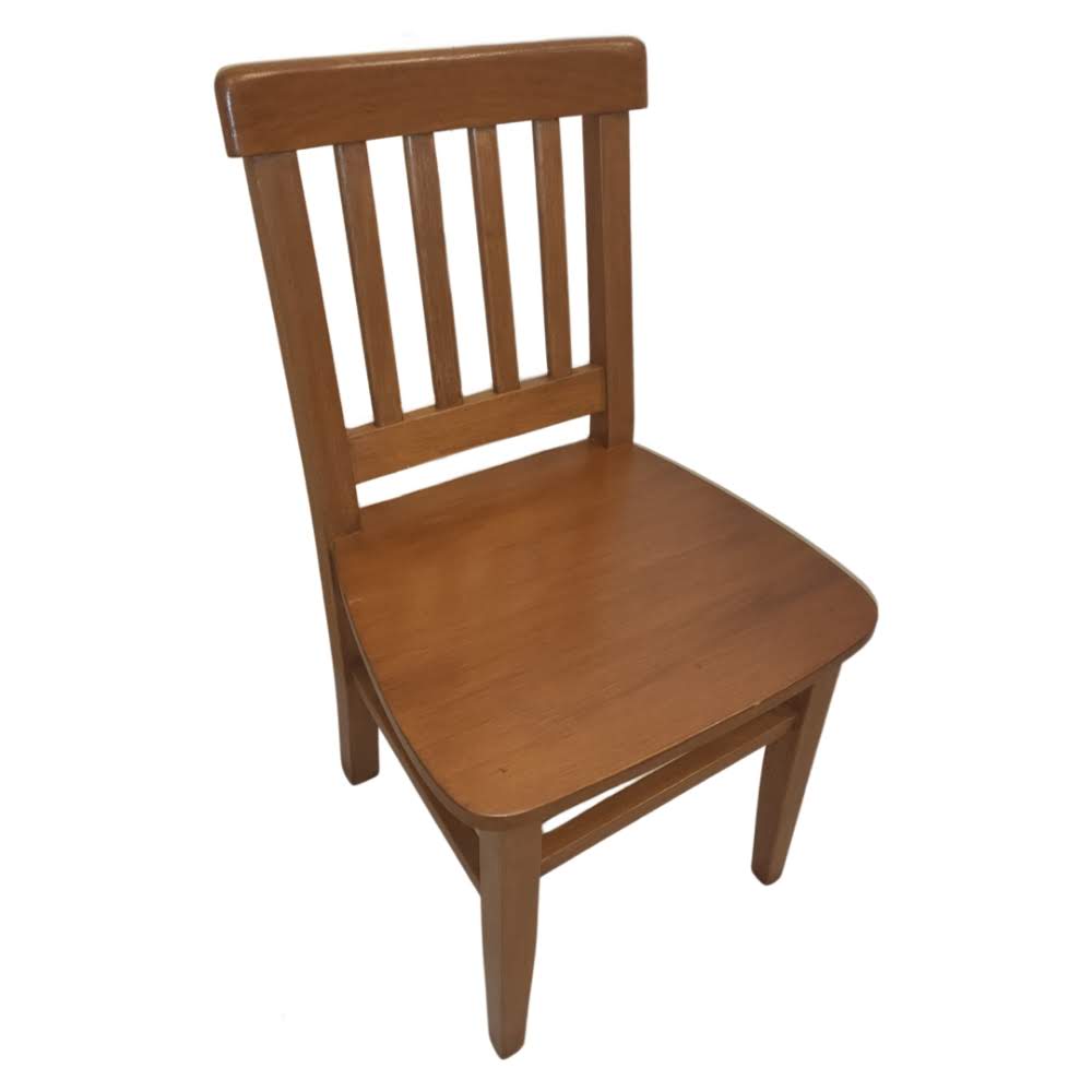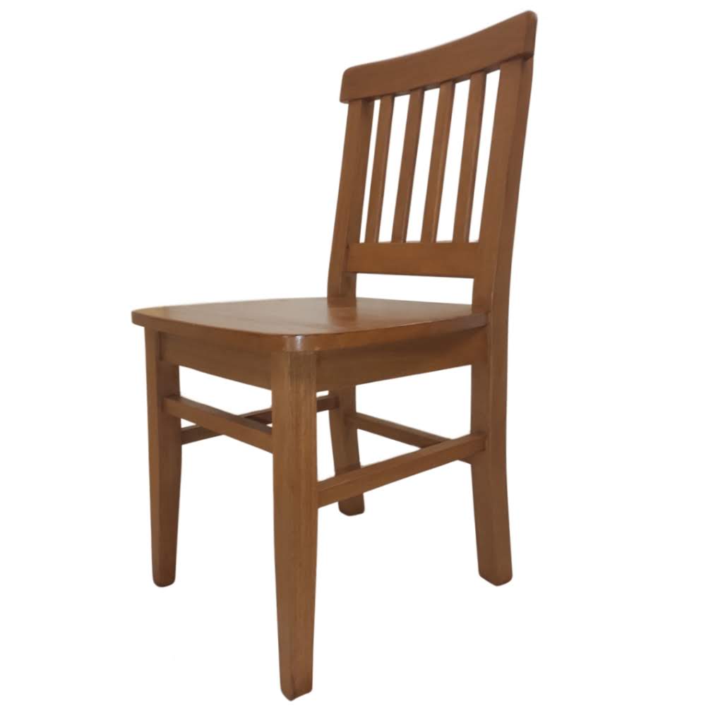 Cadeira de madeira maciça, jequitibá de reflorestamento, com acabamento envernizado e encerado.
