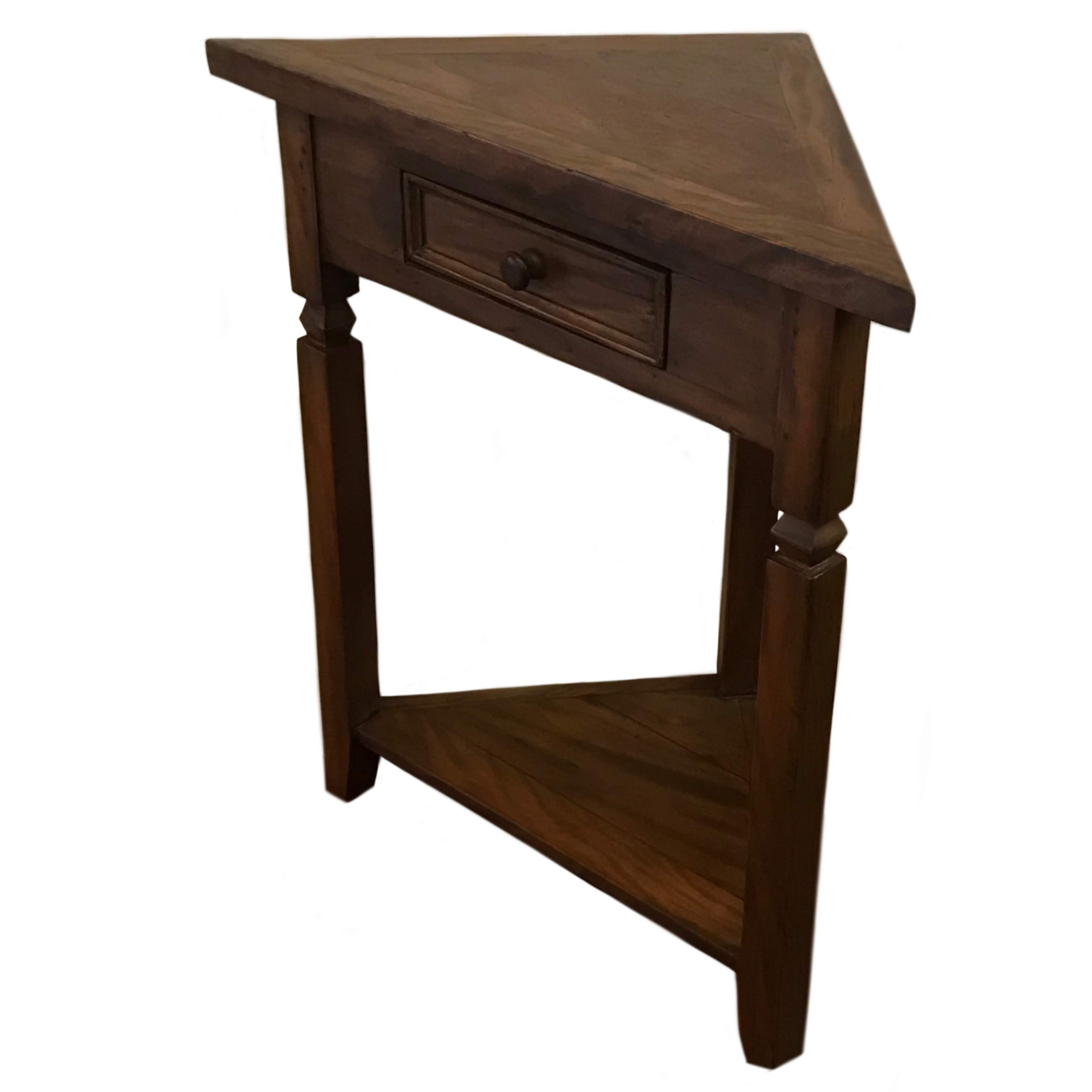 Aparador mesa de canto de peroba rosa, madeira maciça de demolição, com gaveta e prataleira.