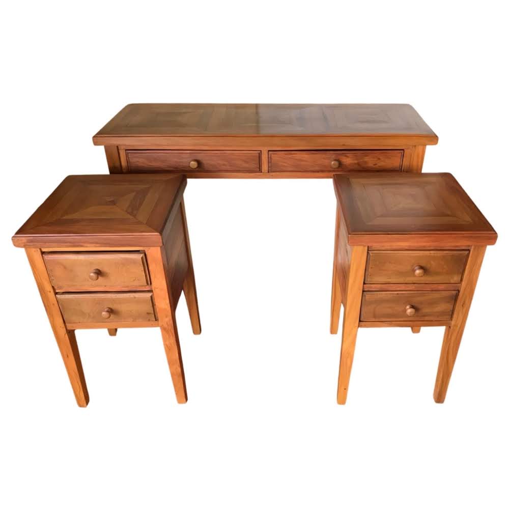 Conjunto de 2 Mesas de Cabeceira + 1 Aparador escrivaninha de madeira maciça, peroba rosa de demolição.