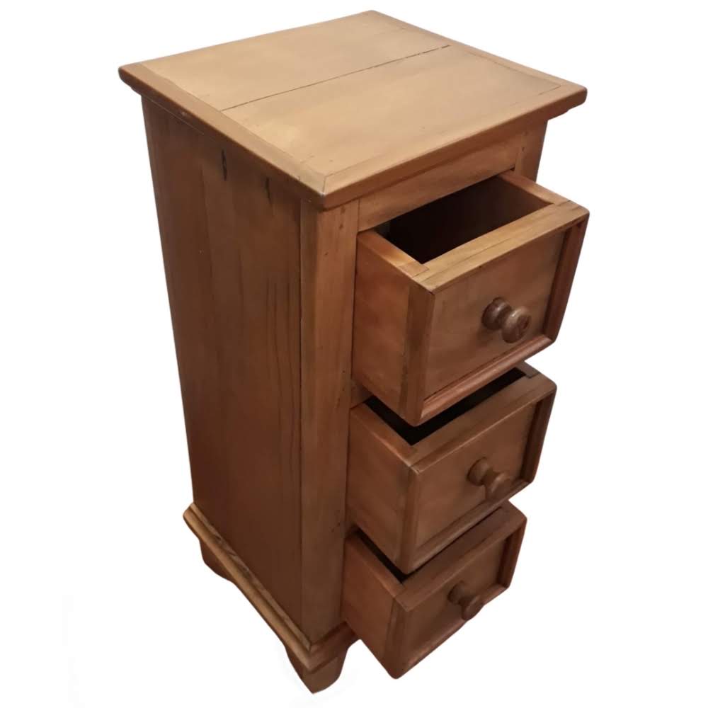 Mesa de cabeceira de madeira maciça, peroba rosa de demolição, com 3 gavetas.
