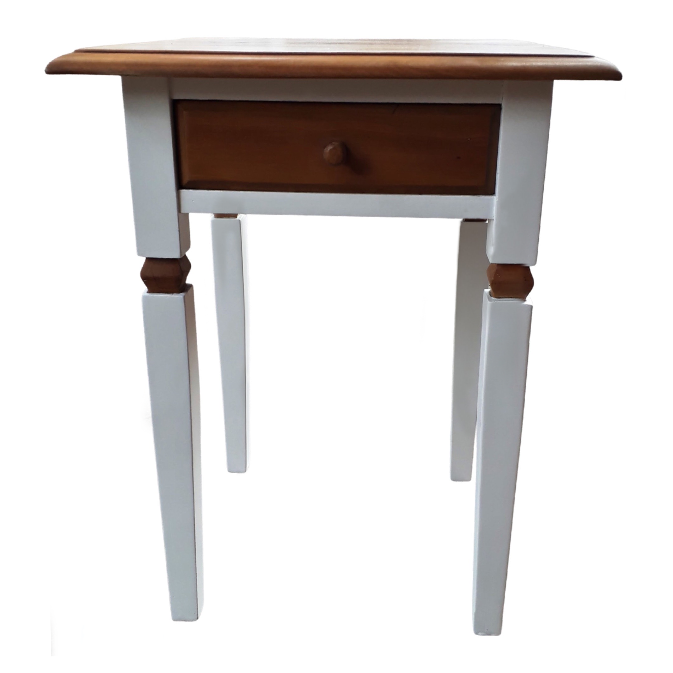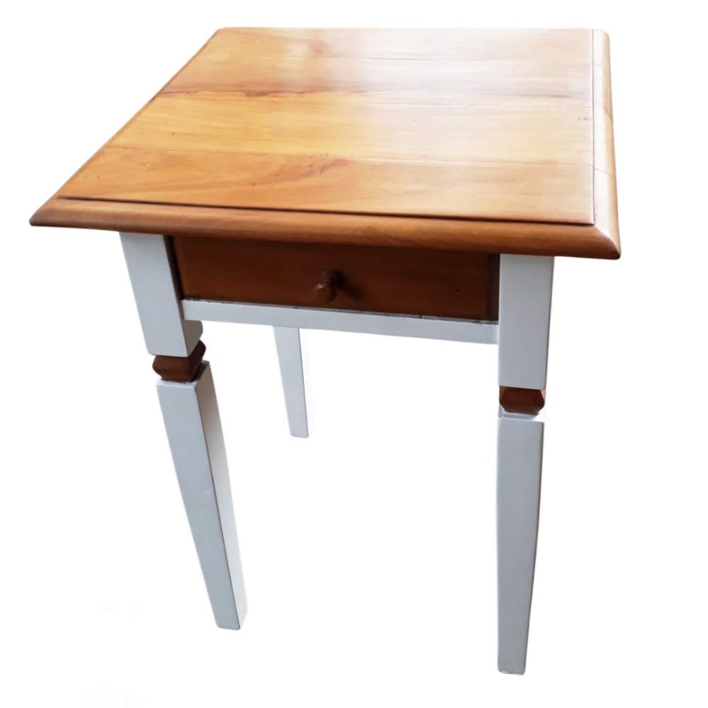 Mesa de cabeceira ou de canto de madeira maciça, peróba rosa de demolição, com 1 gaveta.