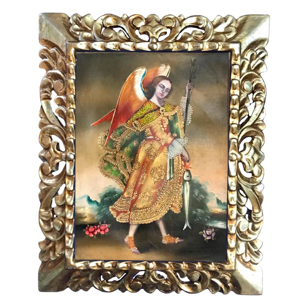 Moldura madeira entalhada a mão, com acabamento folhada à ouro.