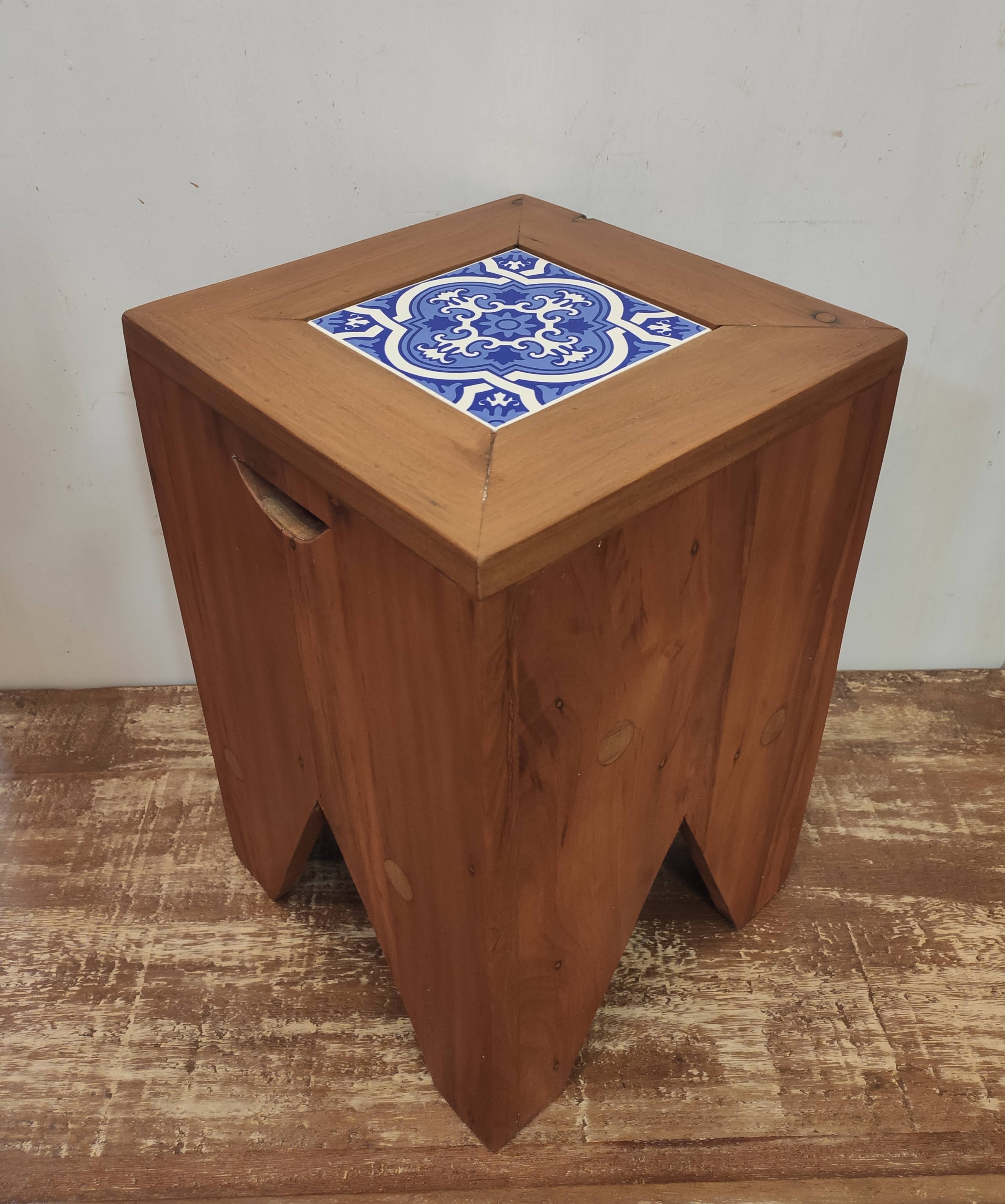 Banco em madeira maciça com 1 azulejo *SOLICITE ORÇAMENTO VIA WHATSAPP*
