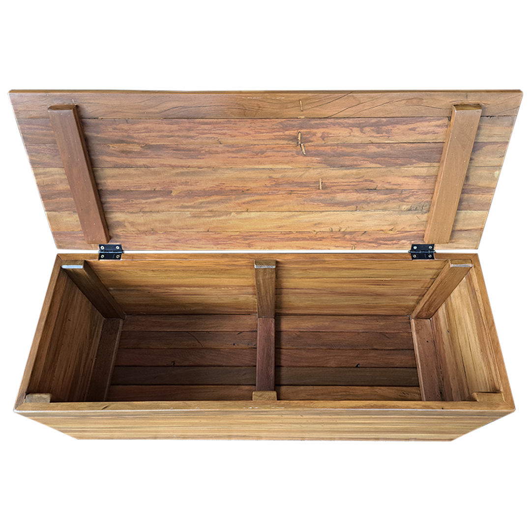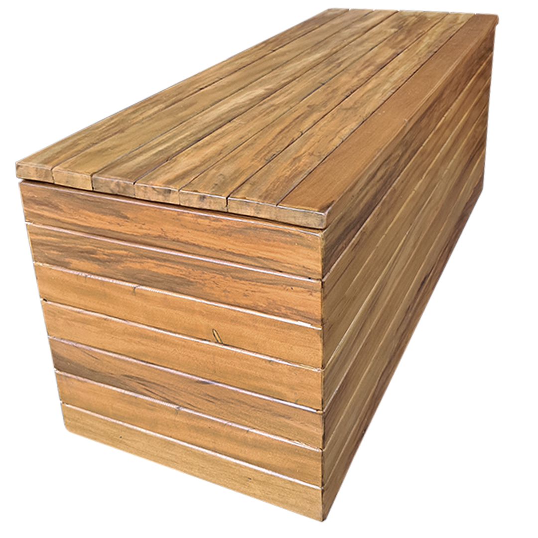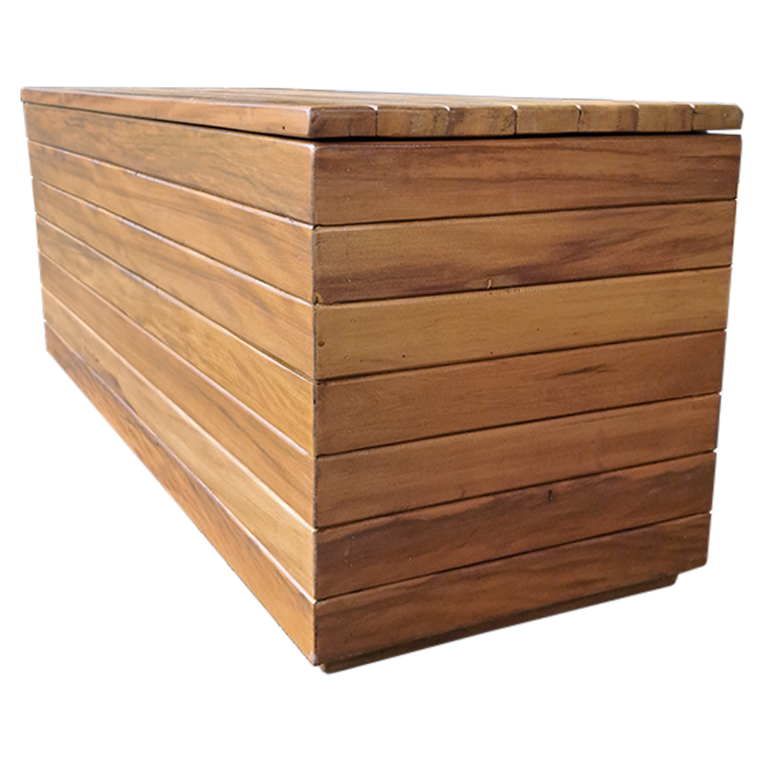 Baú Deck ripado, fabricado em madeira maciça de demolição Peroba rosa.