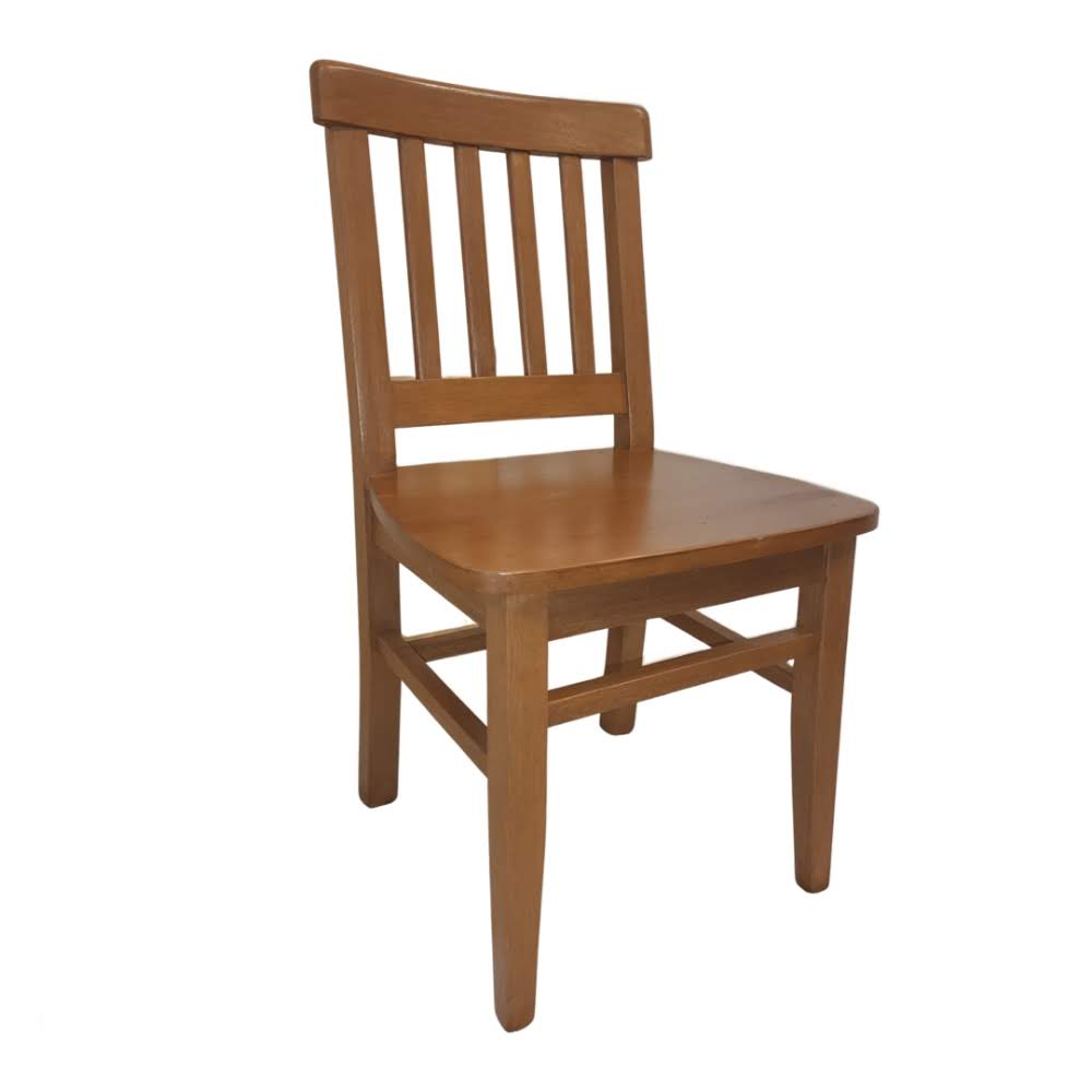 Cadeira de madeira maciça, jequitibá de reflorestamento, com acabamento envernizado e encerado.