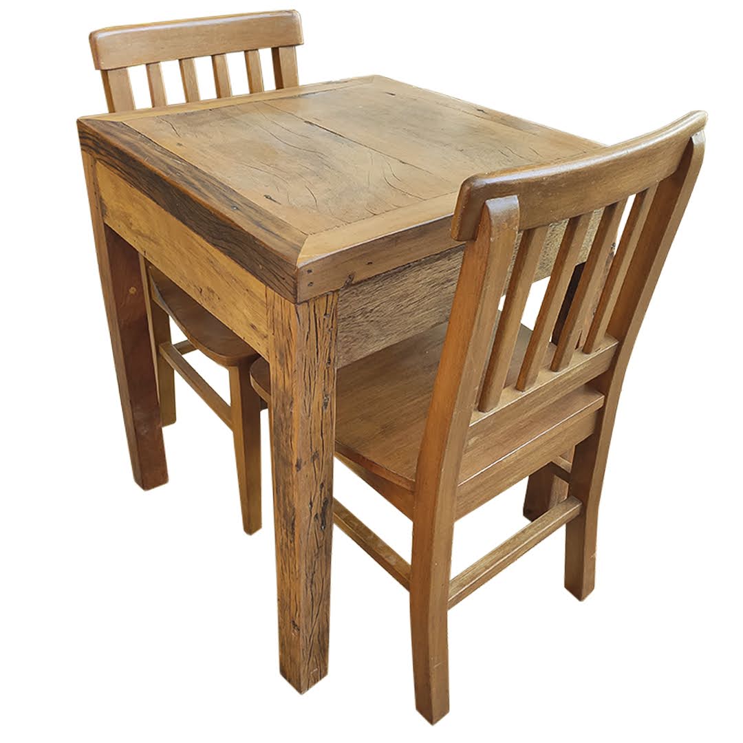 Mesinha infantil de peroba maciça com 2 cadeiras de jequitibá.