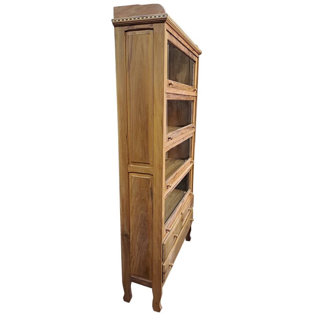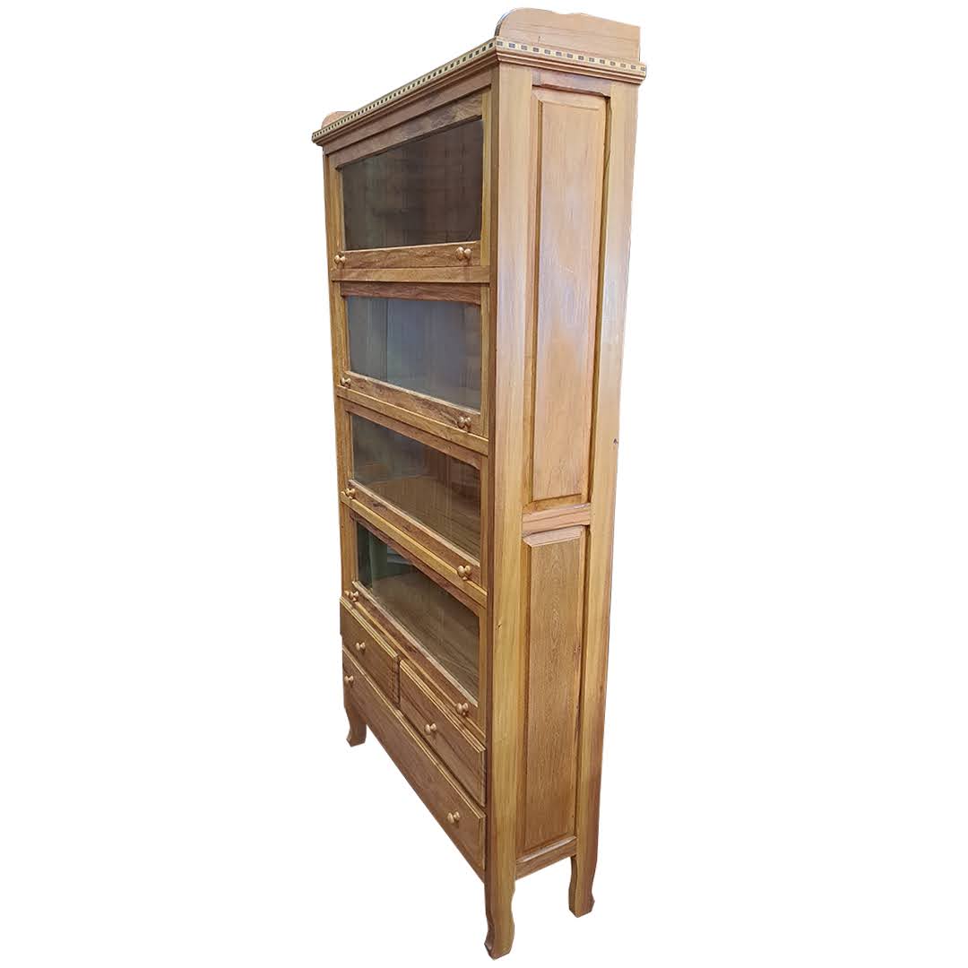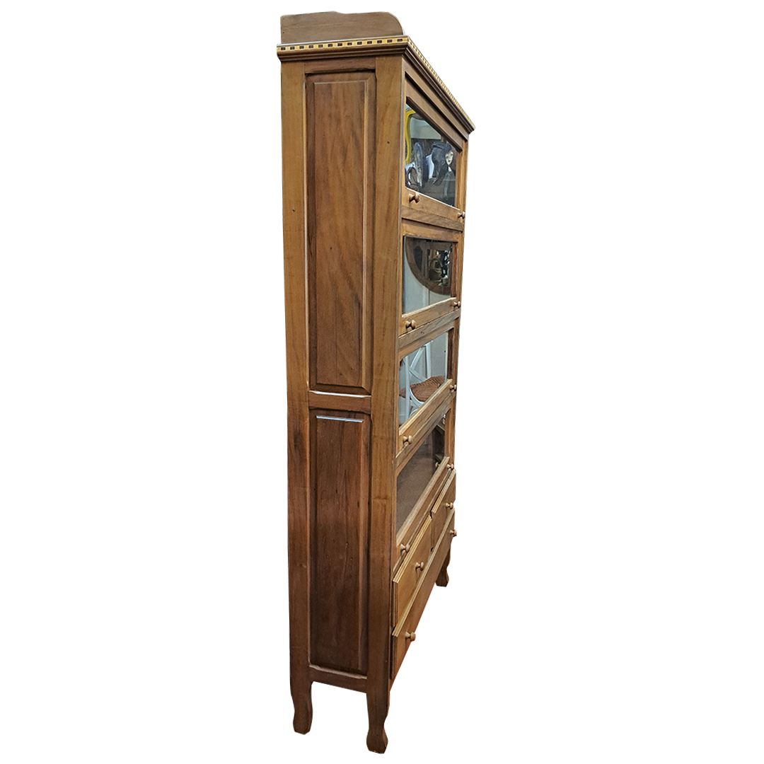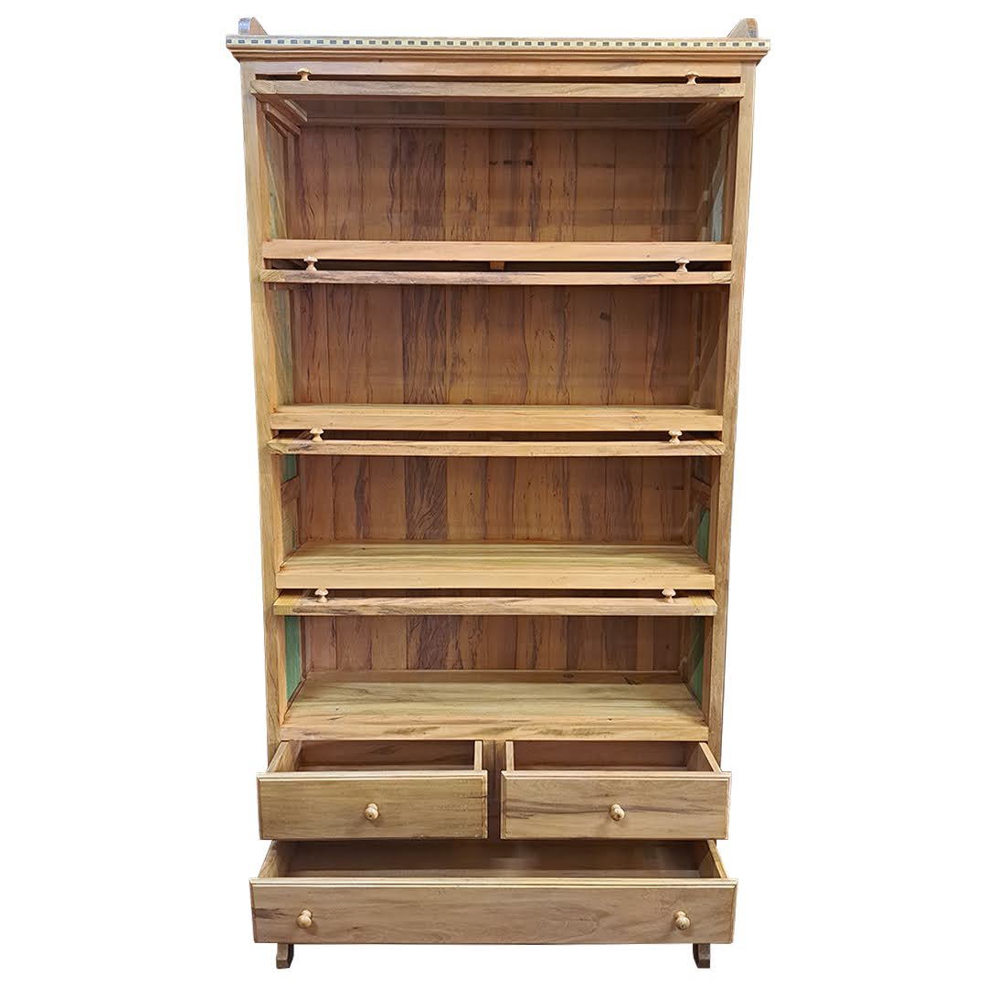 Livreiro/Estante Biblioteca marchetado de madeira, peroba rosa antiga, com portas de vidro retráteis e gavetas. Perfeito para acomodar e proteger livros e demais objetos.