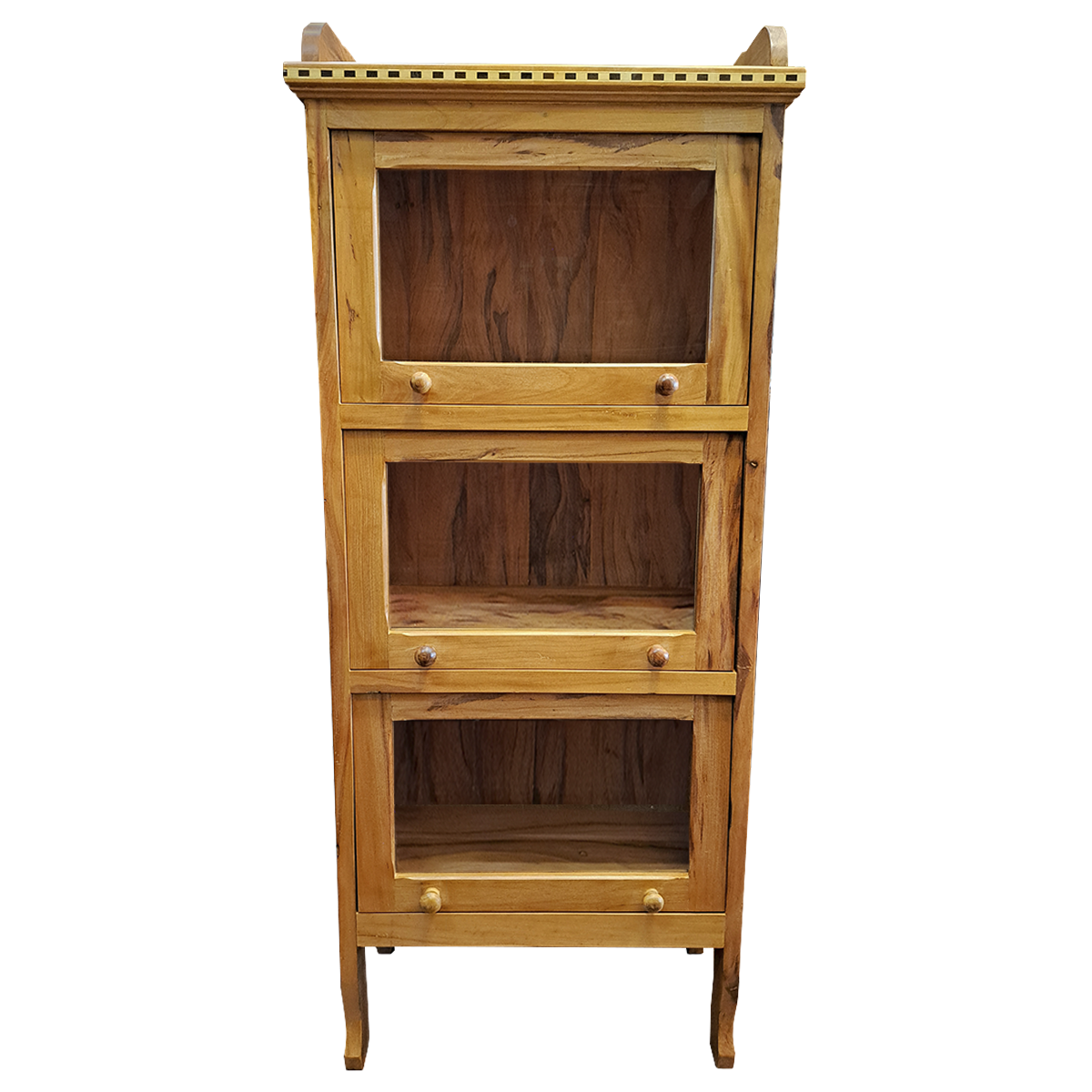 Livreiro/Estante Biblioteca marchetado de madeira, peroba rosa antiga, com portas de vidro retráteis. Perfeito para acomodar e proteger livros e demais objetos.