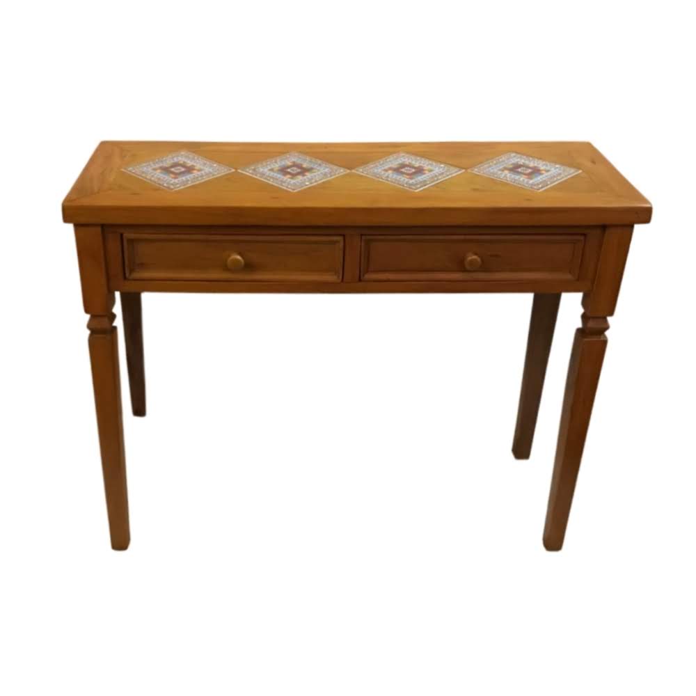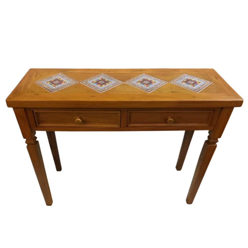 Aparador de madeira maciça, peroba de demolição, decorado com azulejos e 2 gavetas.