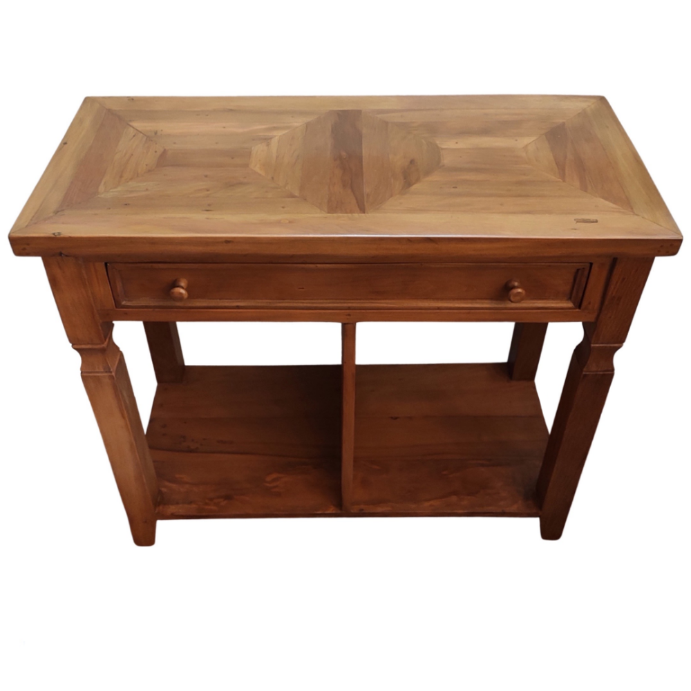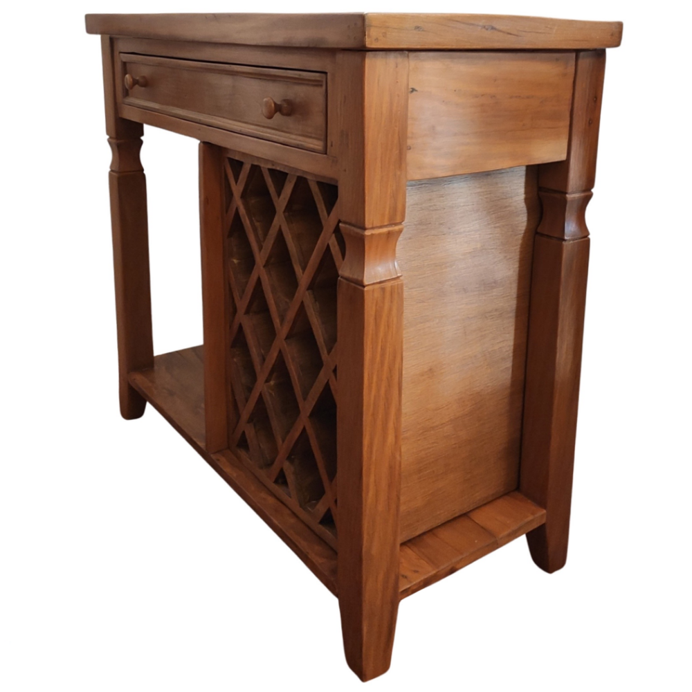 Aparador bar de madeira maciça, peroba rosa de demolição, com adega, tampo marchetado e uma gaveta.