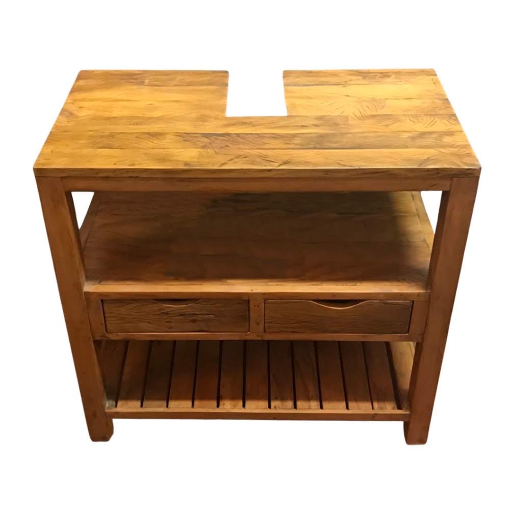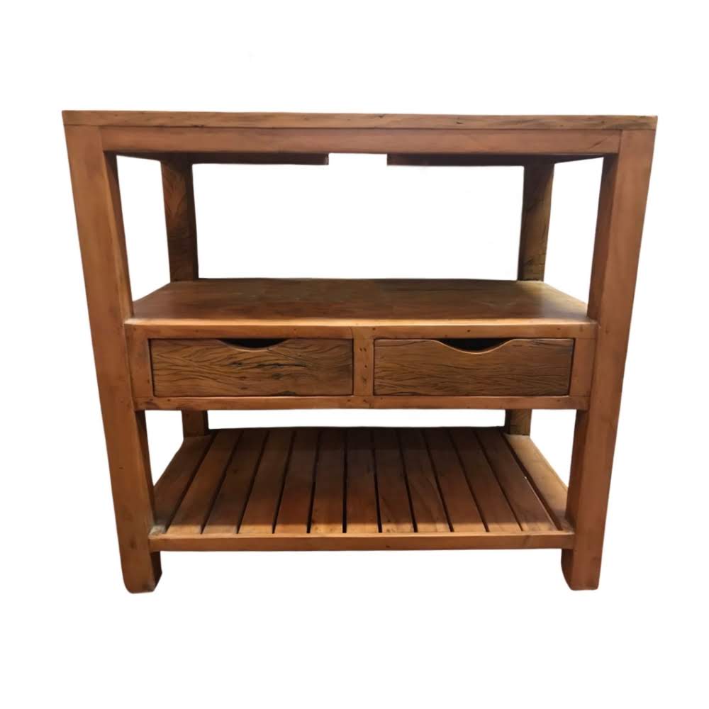 Aparador gabinete de madeira maciça, peroba rosa de demolição, com 2 gavetas centrais, prateleira ripada e recorte no tampo para passagem do cano.