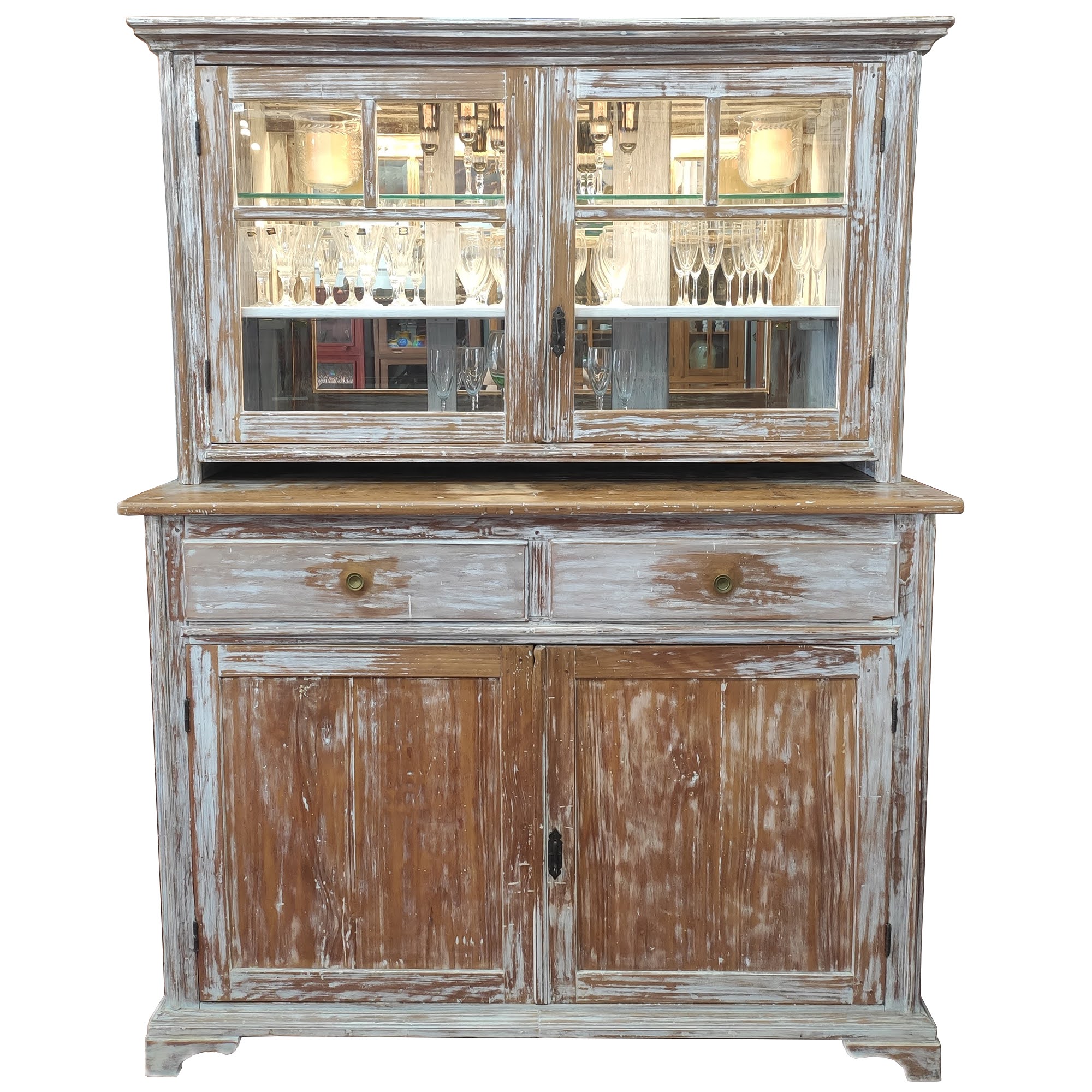 Armário de madeira maciça, peroba rosa antiga, com 2 portas de vidro bisotê, 2 portas de madeira, 2 gavetas e espelho no fundo.