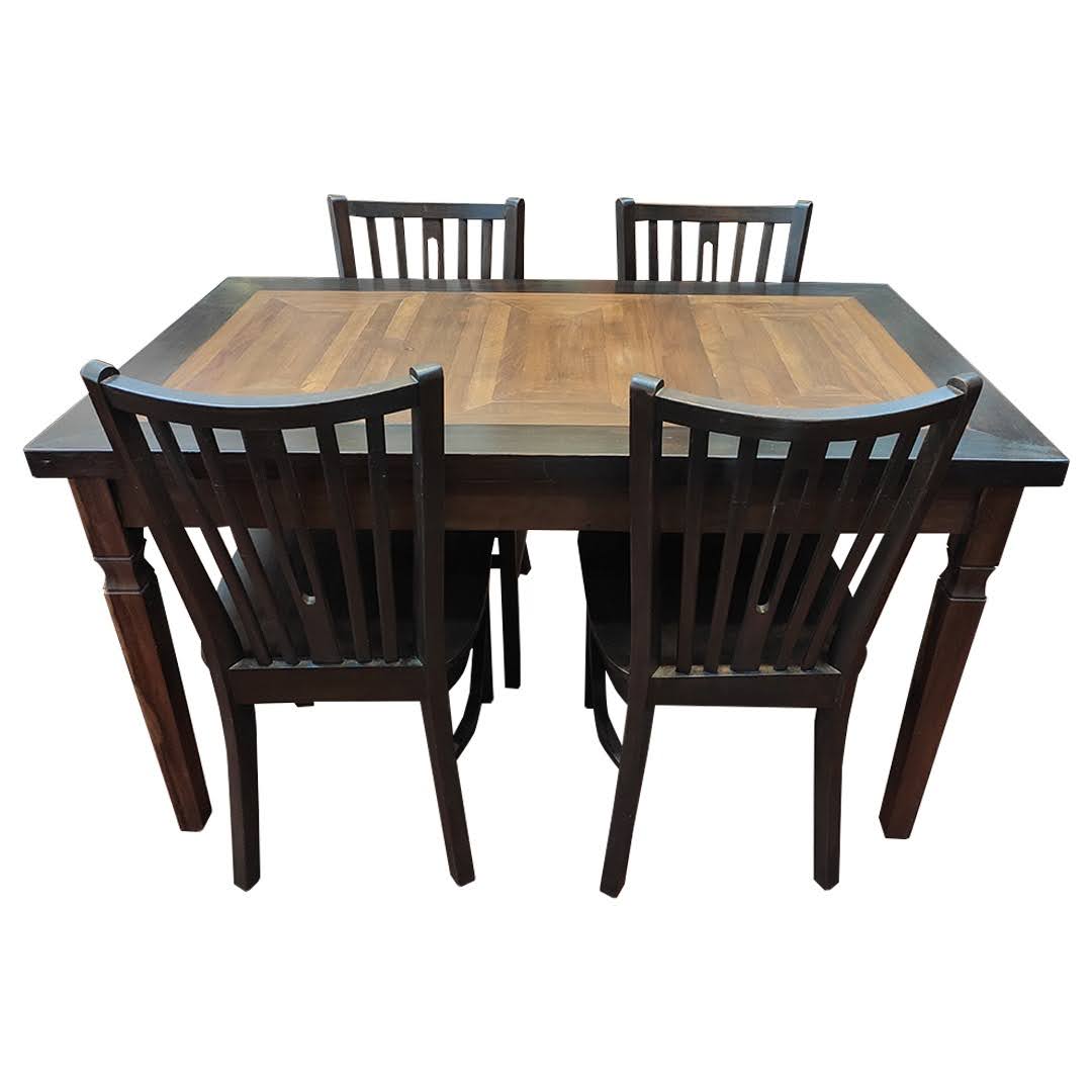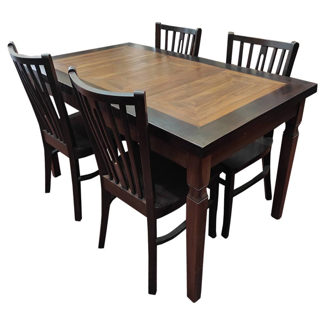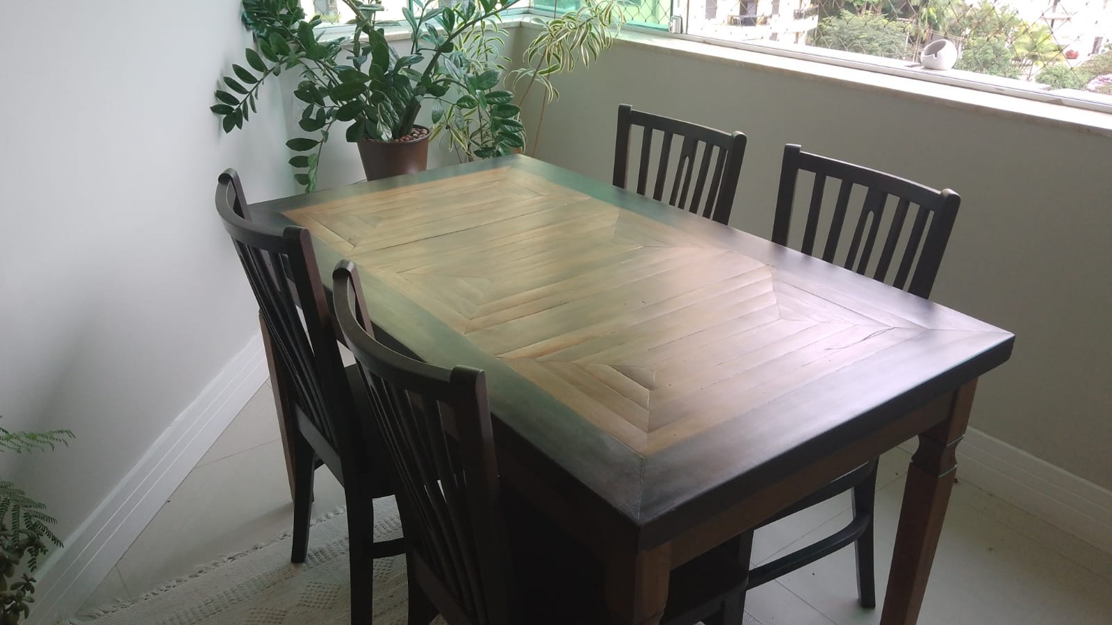 Mesa de Peroba com tampo marchetado e 4 cadeiras de Jequitibá *SOLICITE ORÇAMENTO VIA WHATSAPP*