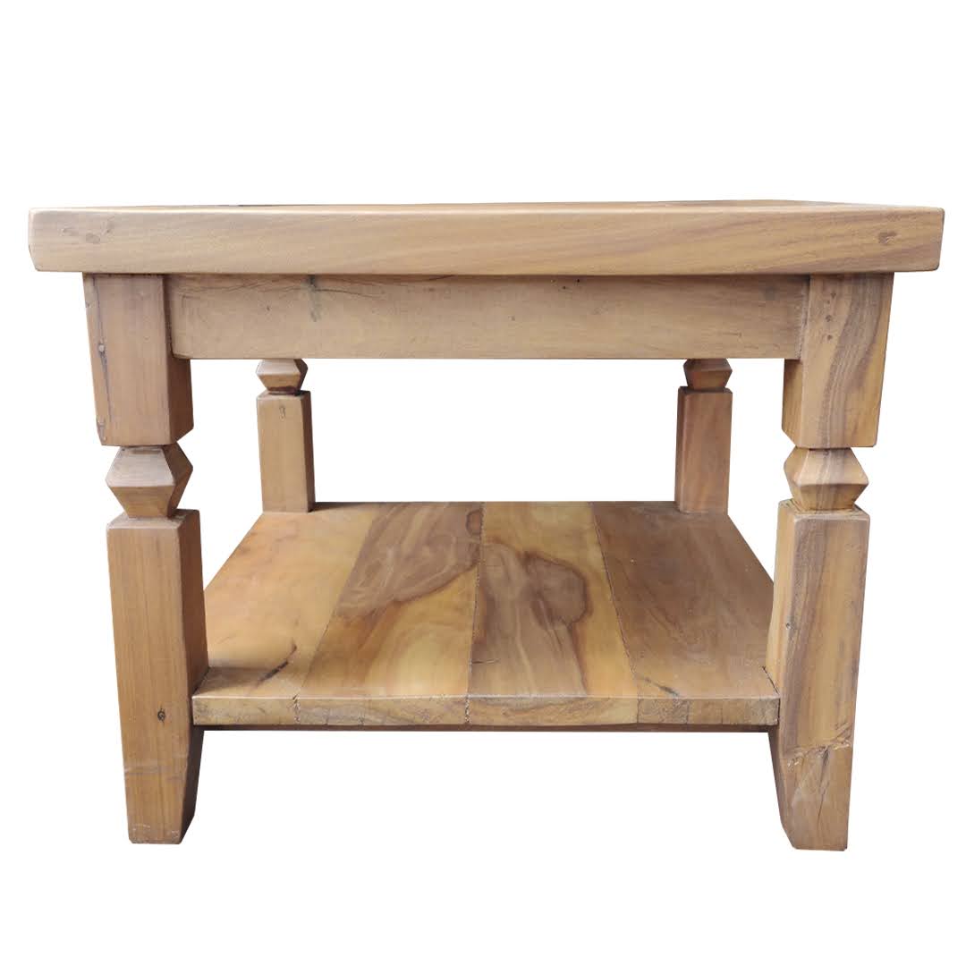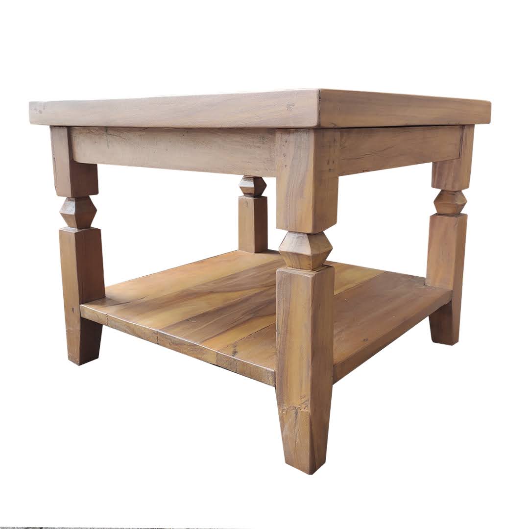 Mesa de madeira maciça, peroba rosa de demolição, com 4 azulejos no tampo que vão fixados.